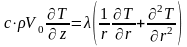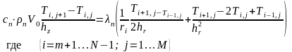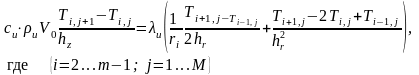 t1 [i]:=t[i]+lamdap/(cp*rop*v0)*hz1*(1/r*((t [i+1] – t [i‑1])/(2*hr1))+(t [i+1] – 2*t[i]+t [i‑1])/(hr1*hr1));