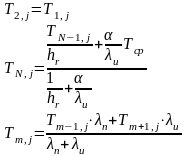 с учётом начальных условий рассчитываем температуру Тi,1;