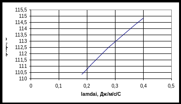 Рис. 11. Зависимость средней арифметической температуры от коэффициента теплопроводности