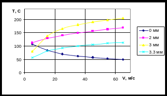 Рис. 6. Зависимость температуры от скорости изолирования жилы