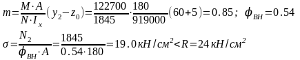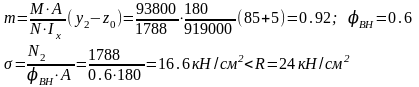 Для наружной ветви Aв2 =Nв2/φRγ =1890/0,824=98,5см2