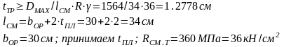 Принимаем tпл=32 мм (2 мм — припуск на фрезеровку).