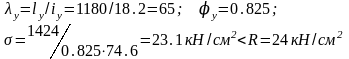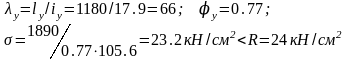АР=12,3см2; imin=1,78; λmax=lp/imin=220/1,78=105; lp=hH/sinα=150/0.8=187.5
