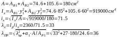Aв1=74,6 см2; ix1=3,79 см; iy= 18,2 см.