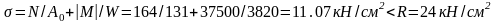 1) M=+375 кНм; N=164 кН;