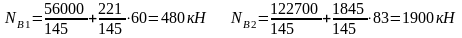 В наружной ветви Nв2=184582/145+122700/145=1890 кН.