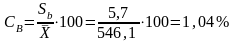 3.5. Выборочное значение коэффициента вариации СВ (%), являющейся мерой относительной изменчивости наблюдаемой случайной величины, вычисляют по формуле: