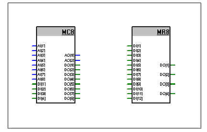 По аналогии с изменением изображения модуля MC8 изменим изображение блока релейного модуля MR8 для большей наглядности. В результате алгоблок модуля релейного MR8 примет следующий вид (рис.7).