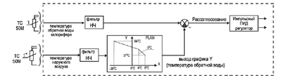 Рисунок 1- Структурная схема алгоритма регулятора температуры обратной воды калорифера в зависимости от температуры наружного воздуха