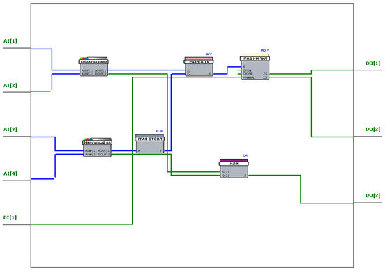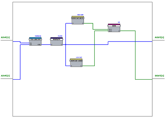 После удаления неиспользуемых входов и выходов блок прибора примет такой вид приведенный ниже.