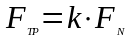 Сила трения пропорциональна нормально действующей силе на поверхность, не зависимо от площади контакта: