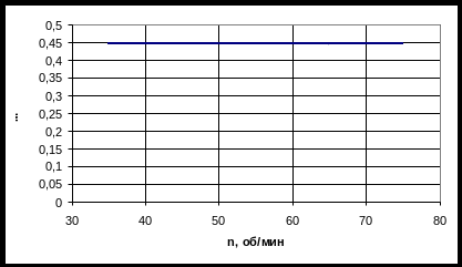 Рис. 10. Зависимость длины зоны загрузки от частоты вращения шнека