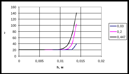 Рис. 5. Распределение температуры по длине зоны загрузки для разной высоты канала