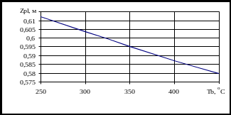 Рис. 5. Зависимость длины зоны плавления от температуры корпуса