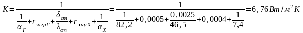 Расчетный коэффициент теплопередачи: