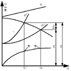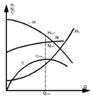 Регулирование работы насоса выполняется с целью изменения его основных параметров: подачи Q и напора H. Одновременно меняется значения мощности N и коэффициент полезного действия (КПД) η насоса.