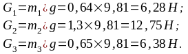 Далее определяем силы тяжести для каждого звена плоского рычажного механизма: