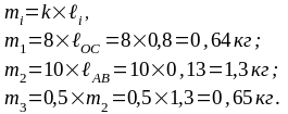 Для определения массы каждого звена плоского рычажного механизма воспользуемся следующими формулами: