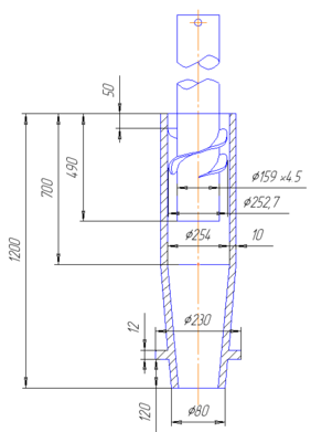 Рекомендуемый диапазон диаметров циклона: D=800; 900; 1000; 1200; 1400; 1600; 1800; 2000 мм,