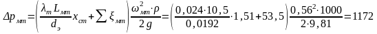 Потери давления в подогревателе с учетом дополнительных потерь хст от шероховатости (для загрязненных стальных труб по Таблице 4 принимаем хст = 1,51):