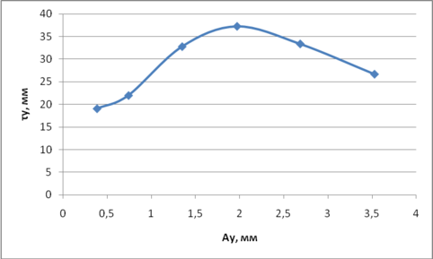 Рисунок 2 - Зависимость амплитуды перемещения выходного звена от частоты перемещения для 100 ͦ С