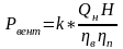 Q — продуктивність вентилятора; Н— напір (тиск);