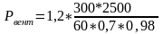 | 3 | К.К.Д. вентилятора | 0,7 |