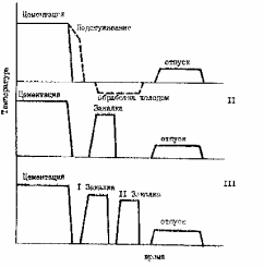 В зависимости от требований, которые предъявляются к цементованным деталям, применяются различные варианты термической обработки (рис 3).