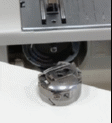 Позиція 4. Коли петля верхньої нитки обійде довкола шпульки більш ніж на 180 градусів, важіль нітепрітягивателя швидко піднімається вгору і затягує стібок. Човник починає рухатися проти годинникової стрілки.