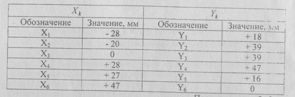 Измерения Хк, Yk, OLk производят с помощью циркуля -измерителя и линейки или с помощью угольника. Данные измерений вносят в таблицу 3.