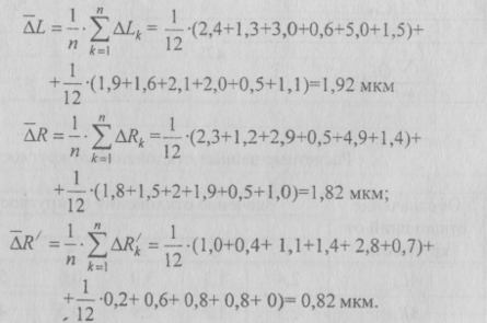 R1наиб (сумма наибольших отклонений направленных внутрь и наружу средней окружности) и определяют средние арифметические значения отклонений [5,7]: