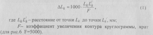 Здесь: Lk- точка пересечения луча с контуром круглограмм»: Lk1- точка пересечения луча с прилегающей окружностью; к=1,2...и (п- количество точек по числу проведенных лучей).