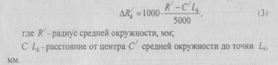 Для определения отклонений от крутости по третьему методу в качестве базы отсчета может быть принята средняя окружность 7 (см. рис.6), проведенная по принципу наименьших квадратов [4].