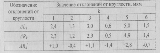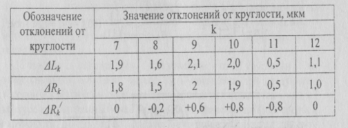 По данным табл. 4 находят наибольшие отклонения от круглости