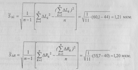 Уточненные средние квадратические отклонения вычисляют по формулам [4,8]: