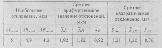 Таблица 5 Данные наибольших отклонений от крутлости и результаты вычислений средних арифметических значений отклонений и уточненных средних квадратических отклонений