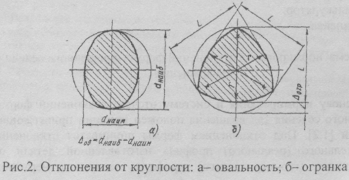 . К дифференцированным (частным) отклонениям от круглости относят овальность и огранку (рис. 2). Огранка может быть с четным и нечетным числом граней. Минимальное число граней - три.