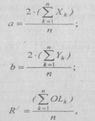 Абсциссу а и ординату Ь, а также радиус R1 определяют по формулам: