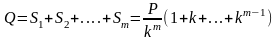 В этом уравнении выражение в скобках является геометрической прогрессией. Суммируя это выражение получают: