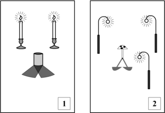 Инструкция к Заданию_3 (см. Бланк №3): в этом задании даны два рисунка. На первой картинке изображен стаканчик и две свечи. На втором рисунке – зонтик-грибок (на детской площадке) в окружение трех фонарей. Необходимо определить, какой рисунок изображен с ошибкой. Ответ: вторая картинка неверная, так как на ней отсутствует тень от третьего фонаря.