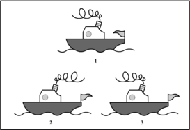 Инструкция к Заданию 2 (см. Бланк №2): данное задание аналогично предыдущему, только здесь изображены три пароходика. Ответ: третий рисунок неверный, так как дым из трубы и флаг не могут быть ветром направлены в противоположные стороны.