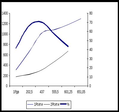 Расчетные данные для построения графика зависимости Рсети и Рдв.