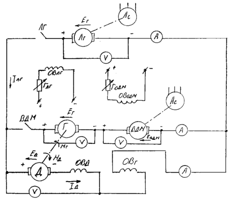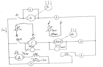Рисунок №1 - схема для снятия электромеханических и регулировочных характеристик тягового электродвигателя.