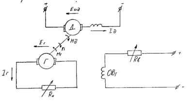 Схема для снятия электромеханических и регулировочных характеристик тягового электродвигателя собрана по методу взаимного нагружения и изображена на рисунке №1