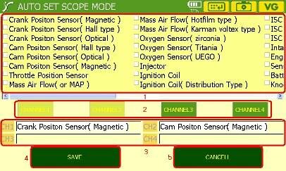 1 – типы датчиков; 2 – каналы; 3 – определение каналов; 4 – сохранение; 5 – отмена