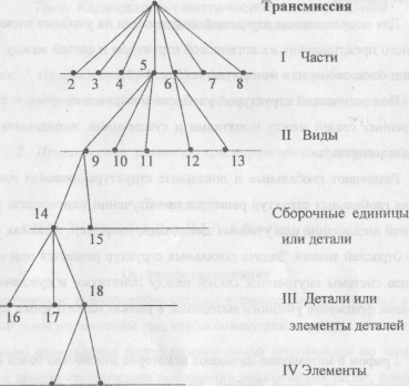 Так, общность учебных элемeнтов, включенных в порядок I (см. рис. 3.1), состоит в том, что всe они части трансмиссии. Все учебные элементы порядка II— виды этих частей, III — детaли, IV — элементы деталей.