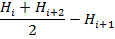 где Нi, Hi+1, Hi+2 - отметки смежных точек