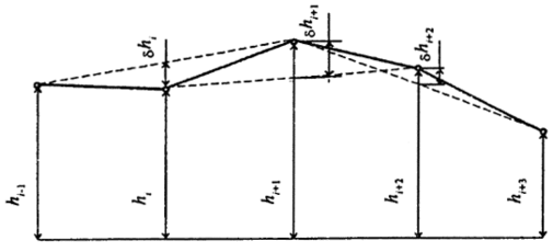 На основе полученных вертикальных отметок следует вычислить алгебраические разности отметок точек (амплитуд) по формуле