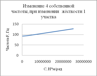 На основе таблицы 4 строим графики, отражающие влияние изменения параметров каждого элемента на собственные частоты.
