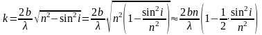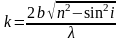 Из (6) следует, что порядок интерференции k при заданных , b и n определяется углом падения i; чем меньше угол i и соответственно sini, тем больше k. Поскольку 1 sin2 i 0, то число k заключено в пределах